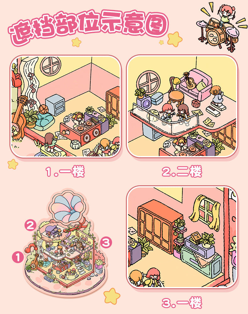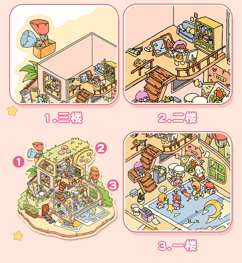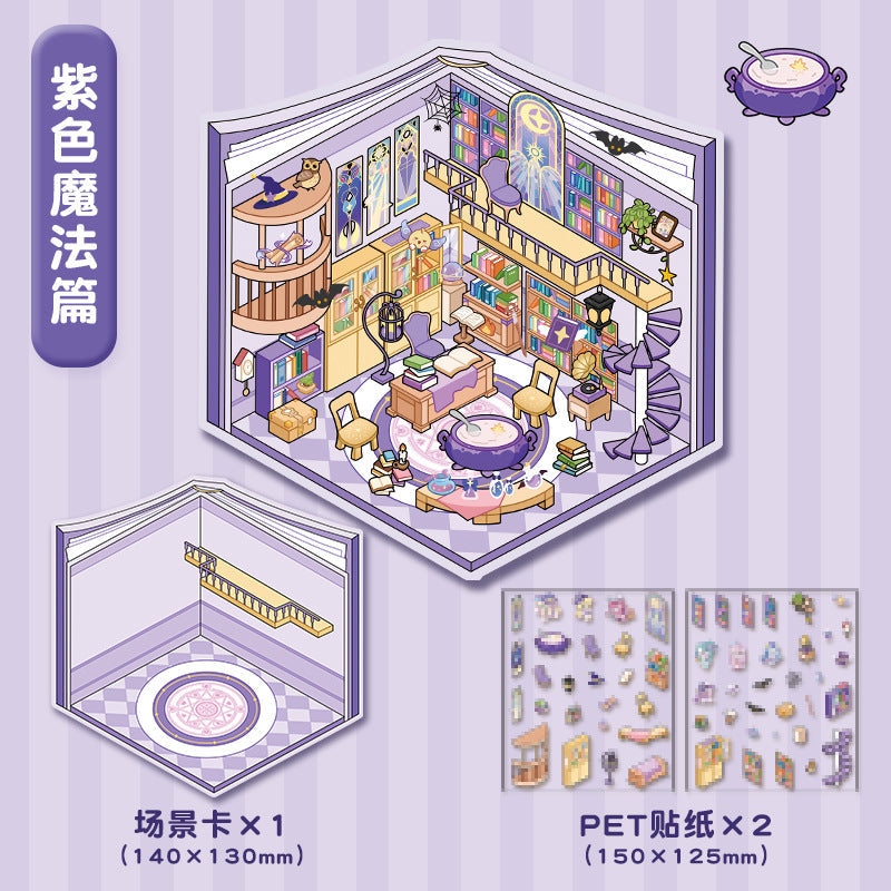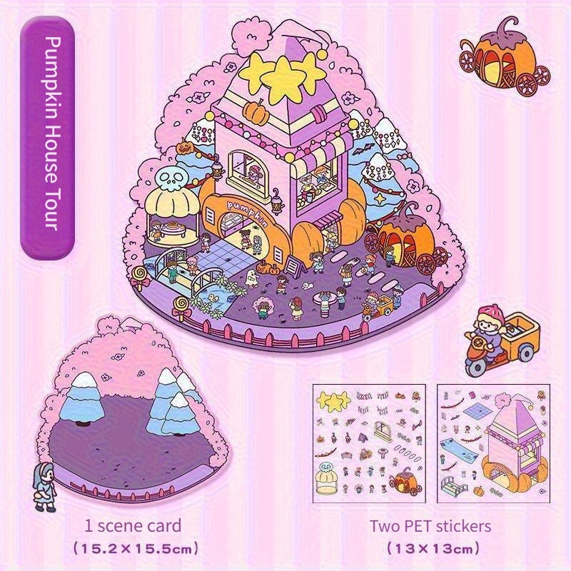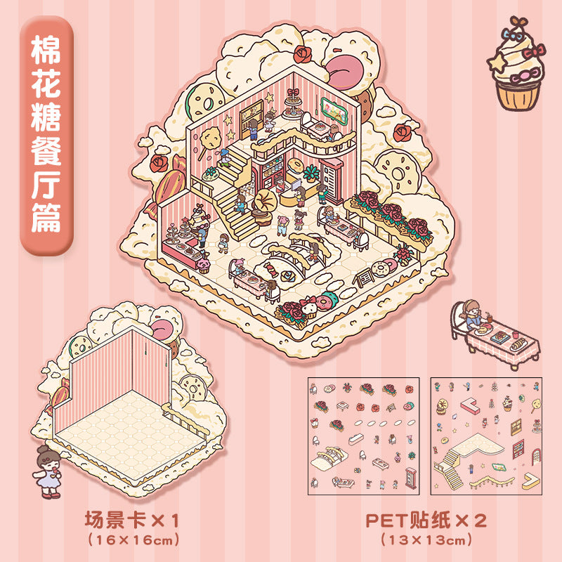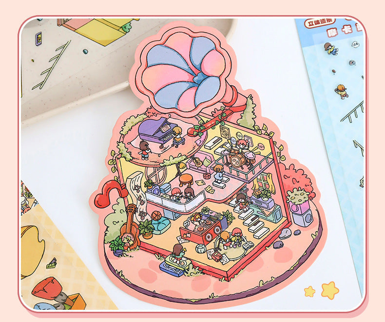 Link 5: 11 Themes Cute Miniature Scene Stickers Cartoon 3D Stereoscopic Cottage Stress Stickers