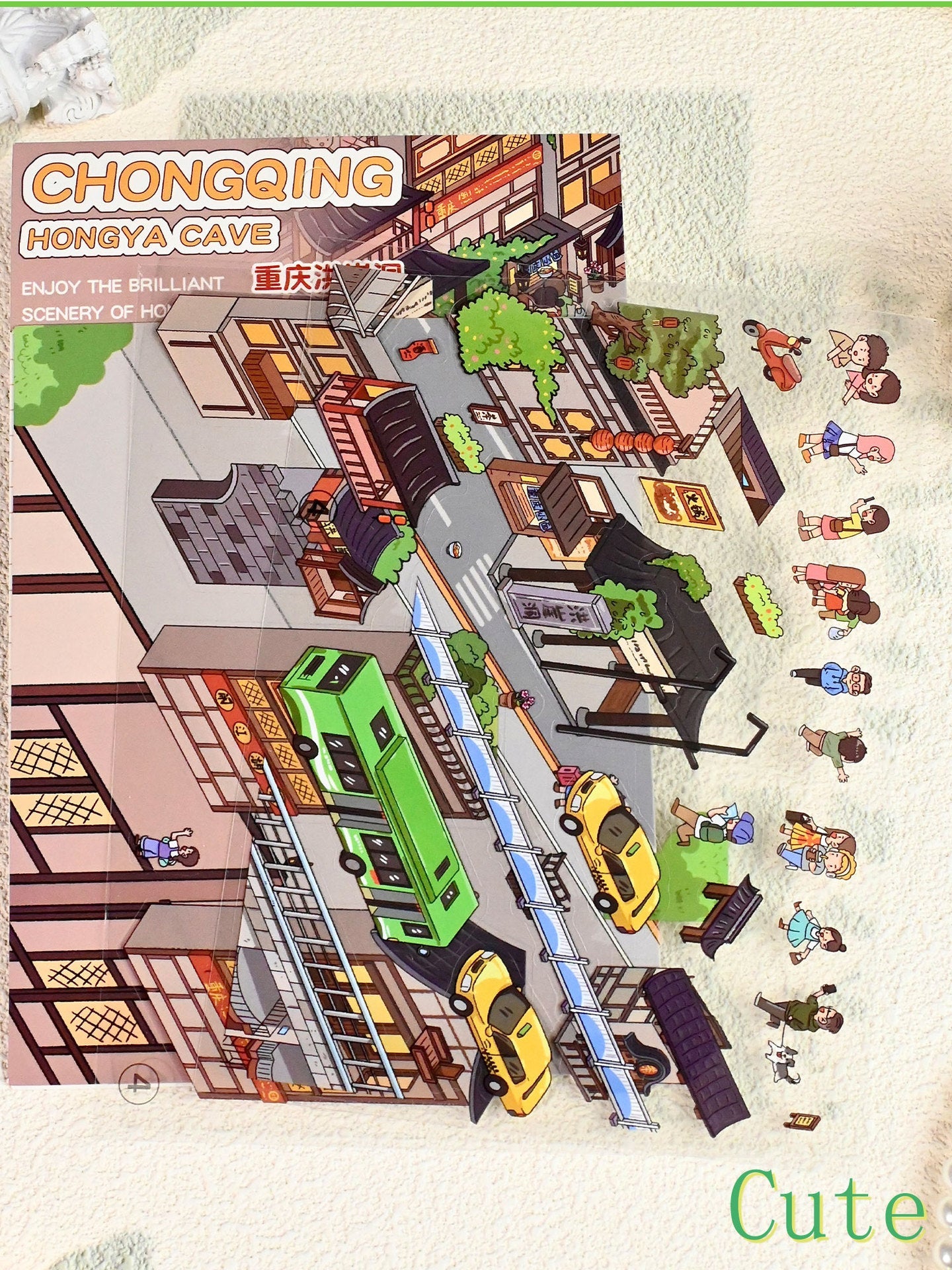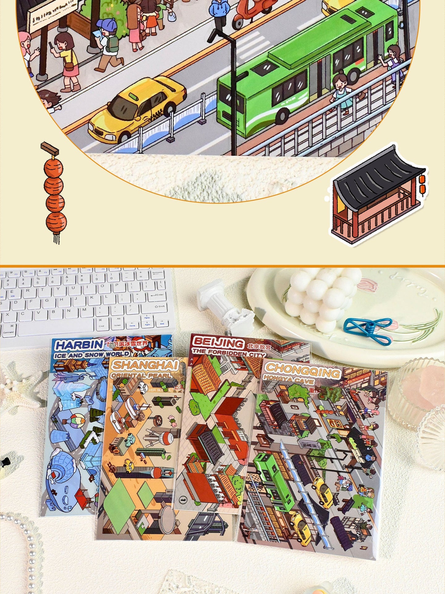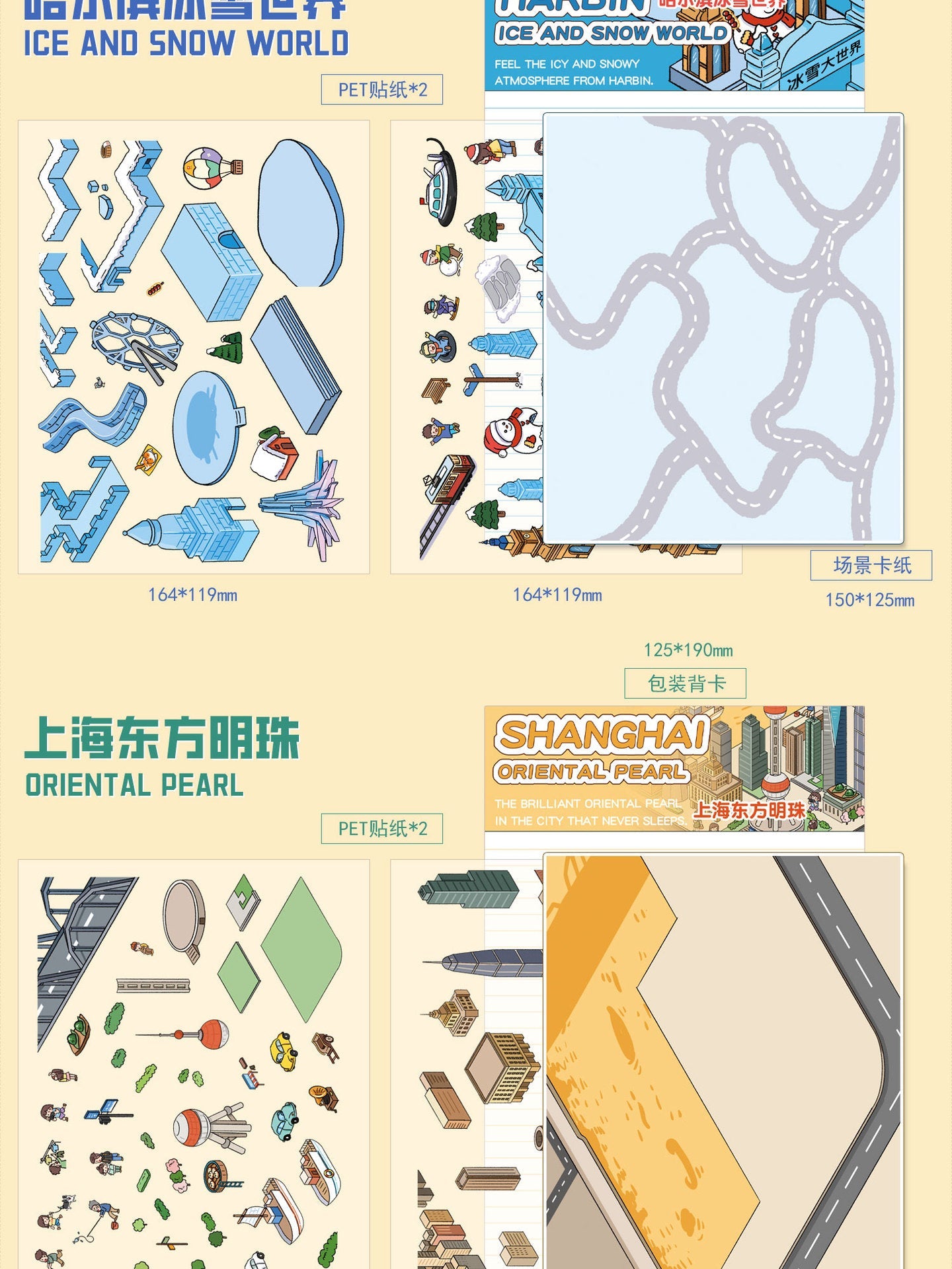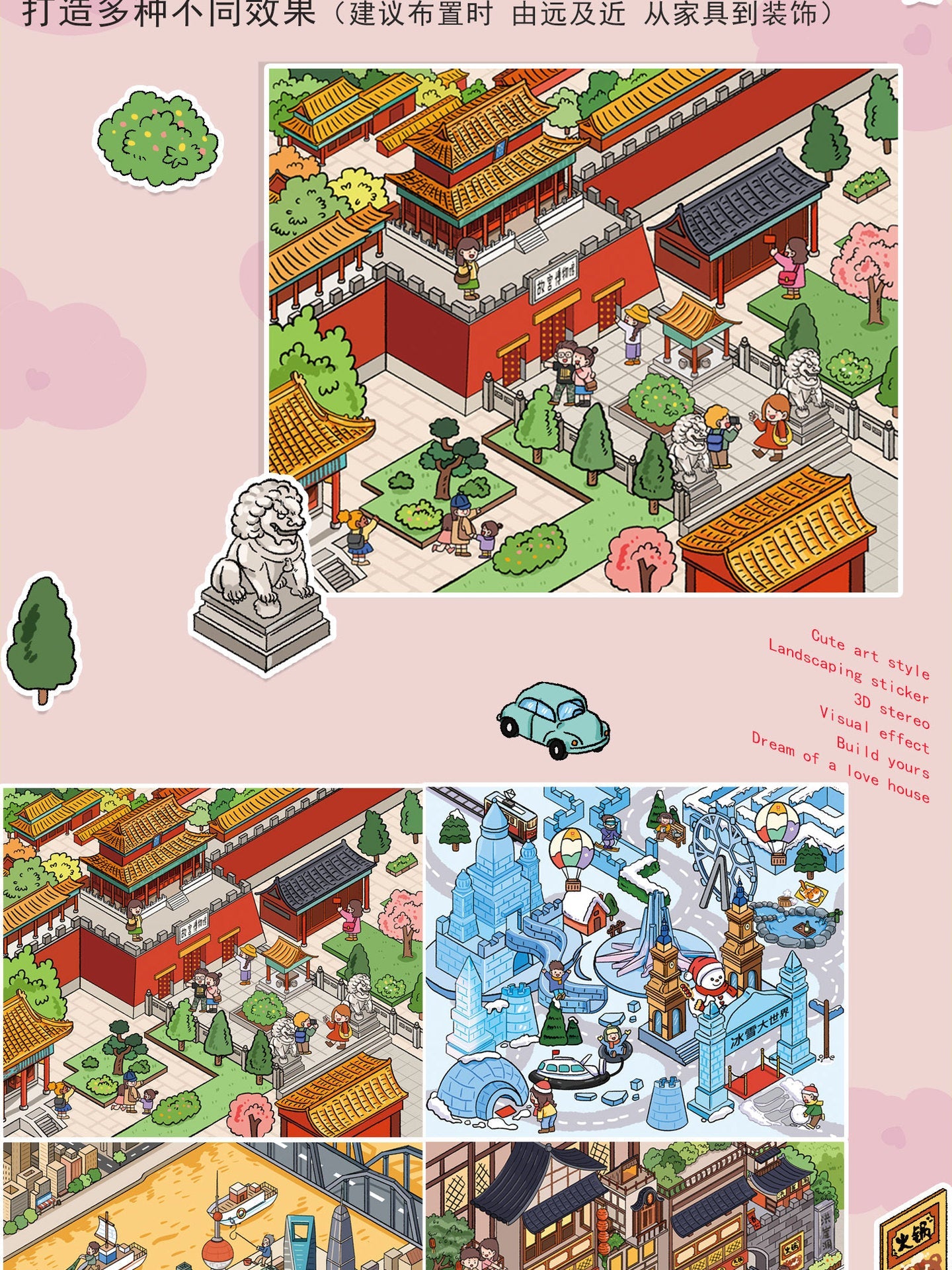 Link 21: 4 City Themes Landscape Stickers 3D Stereo Cottage Collection Stickers