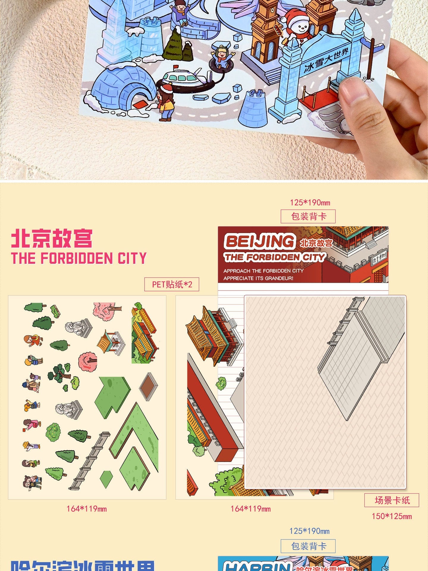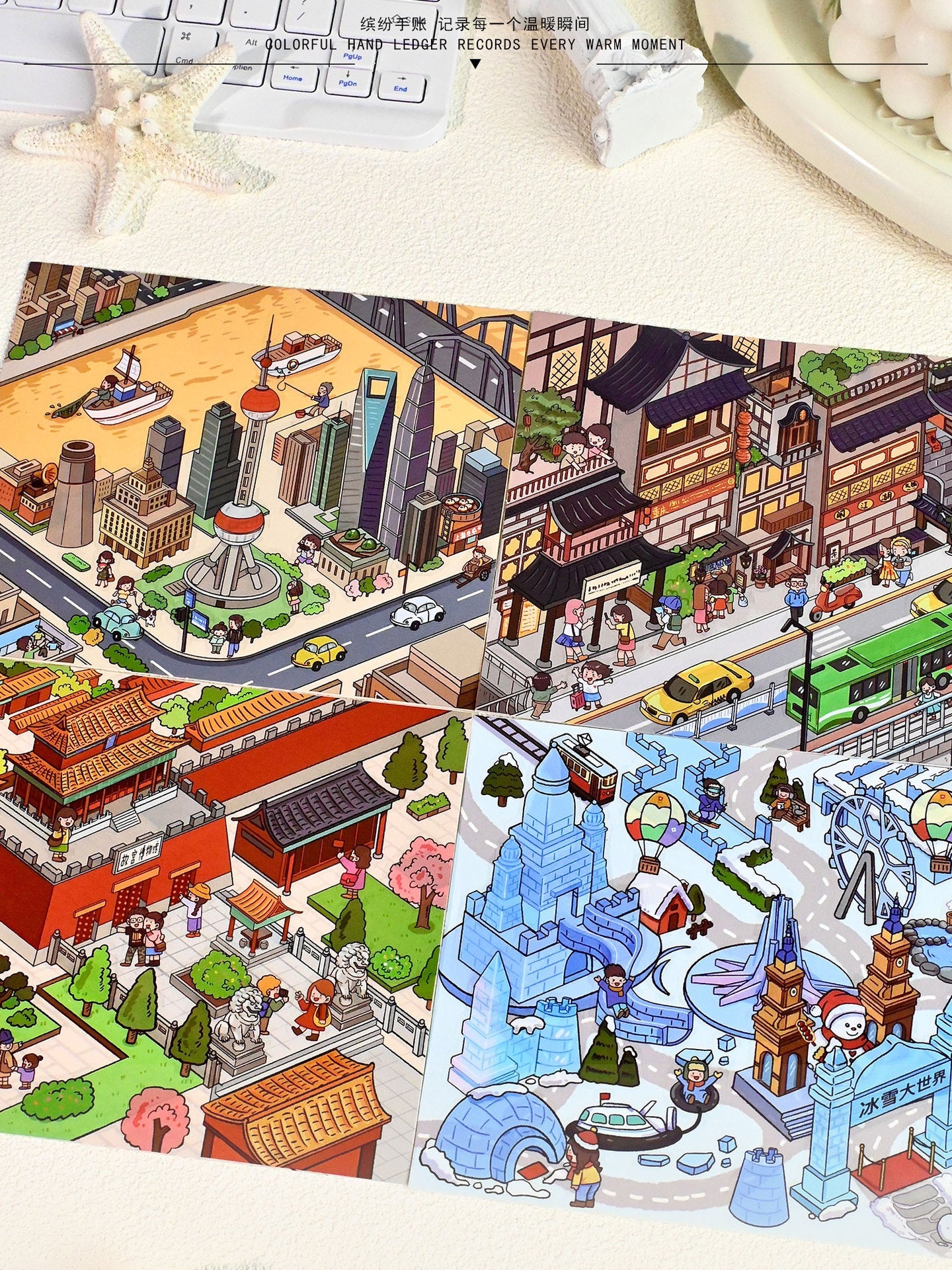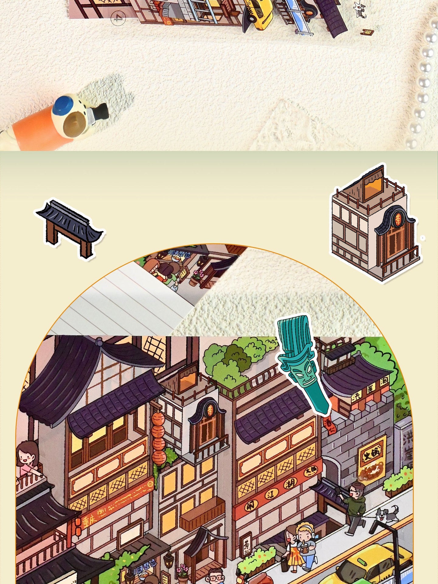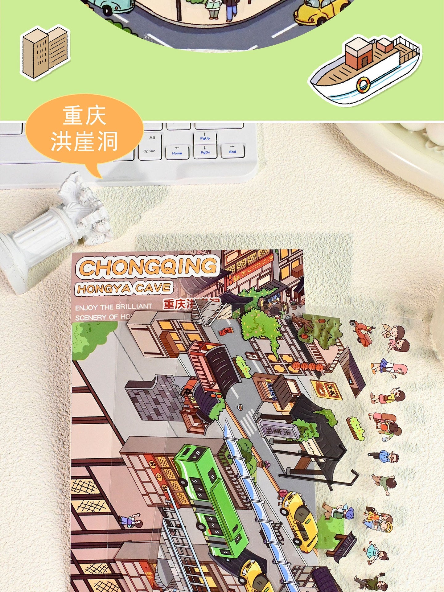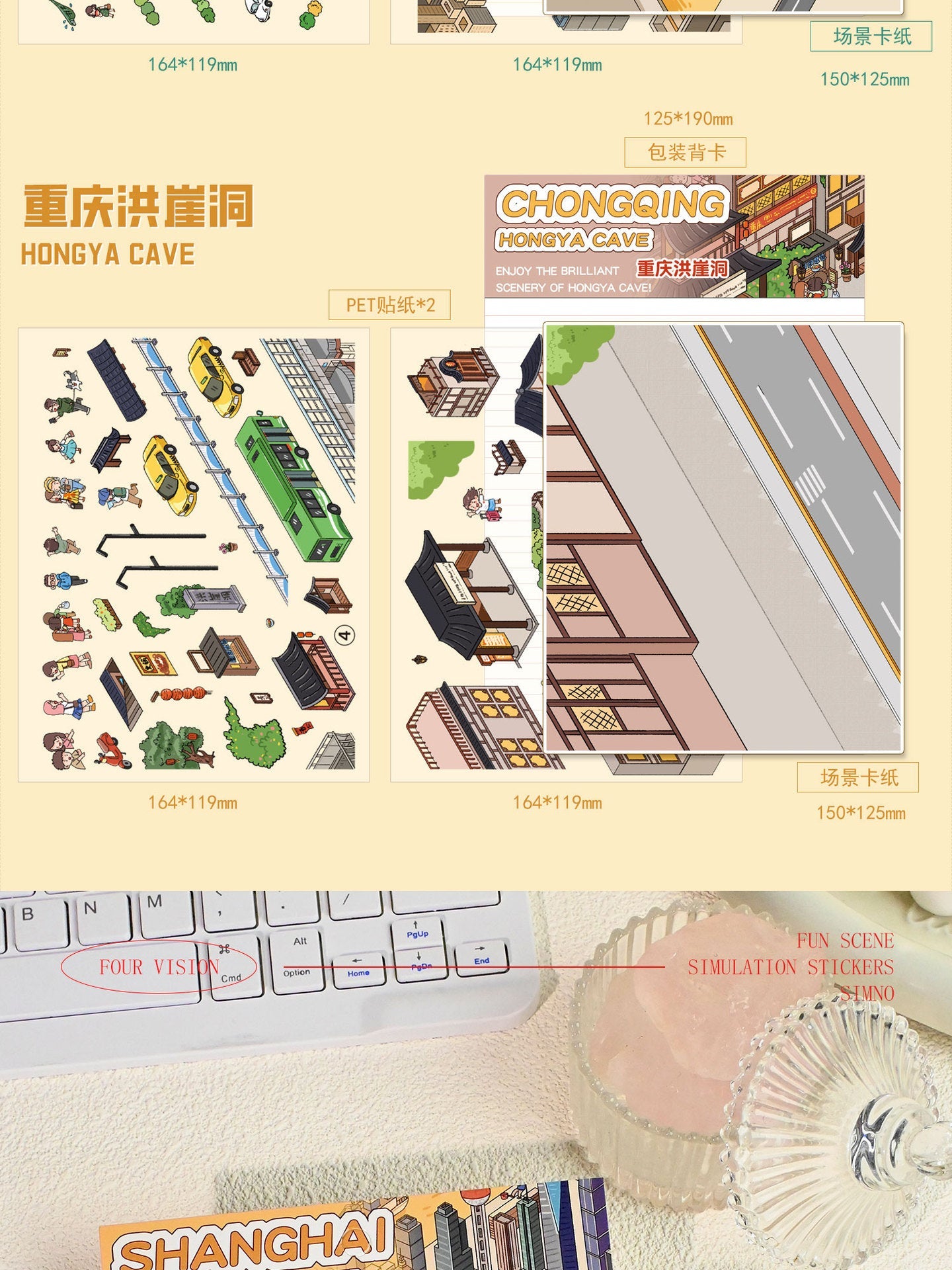 Link 21: 4 City Themes Landscape Stickers 3D Stereo Cottage Collection Stickers