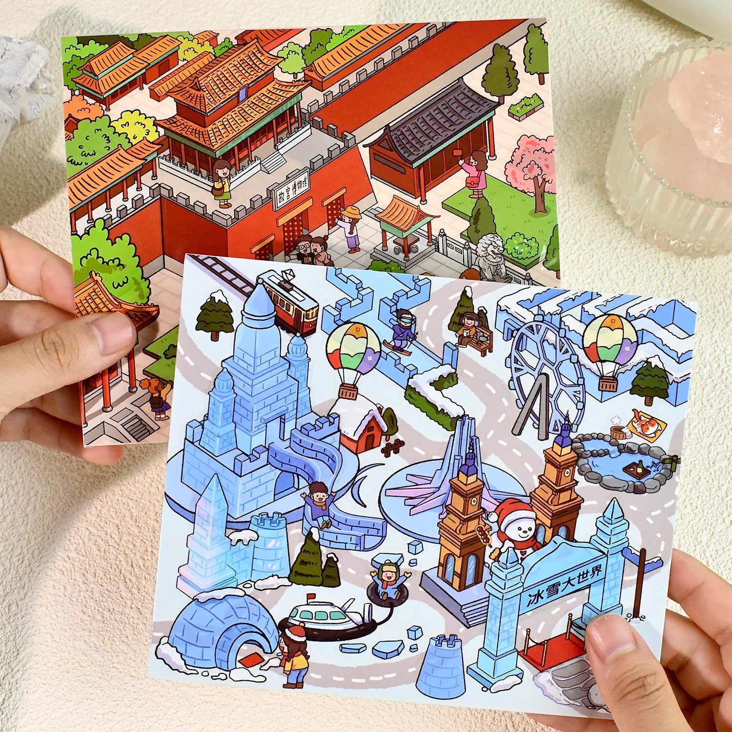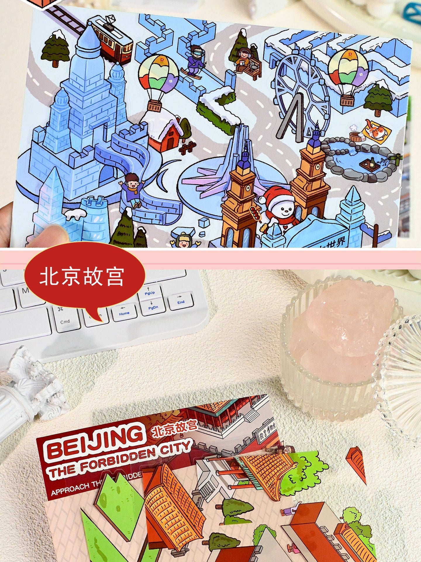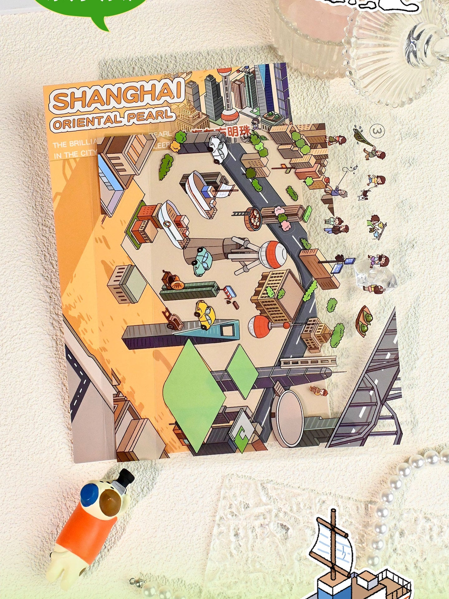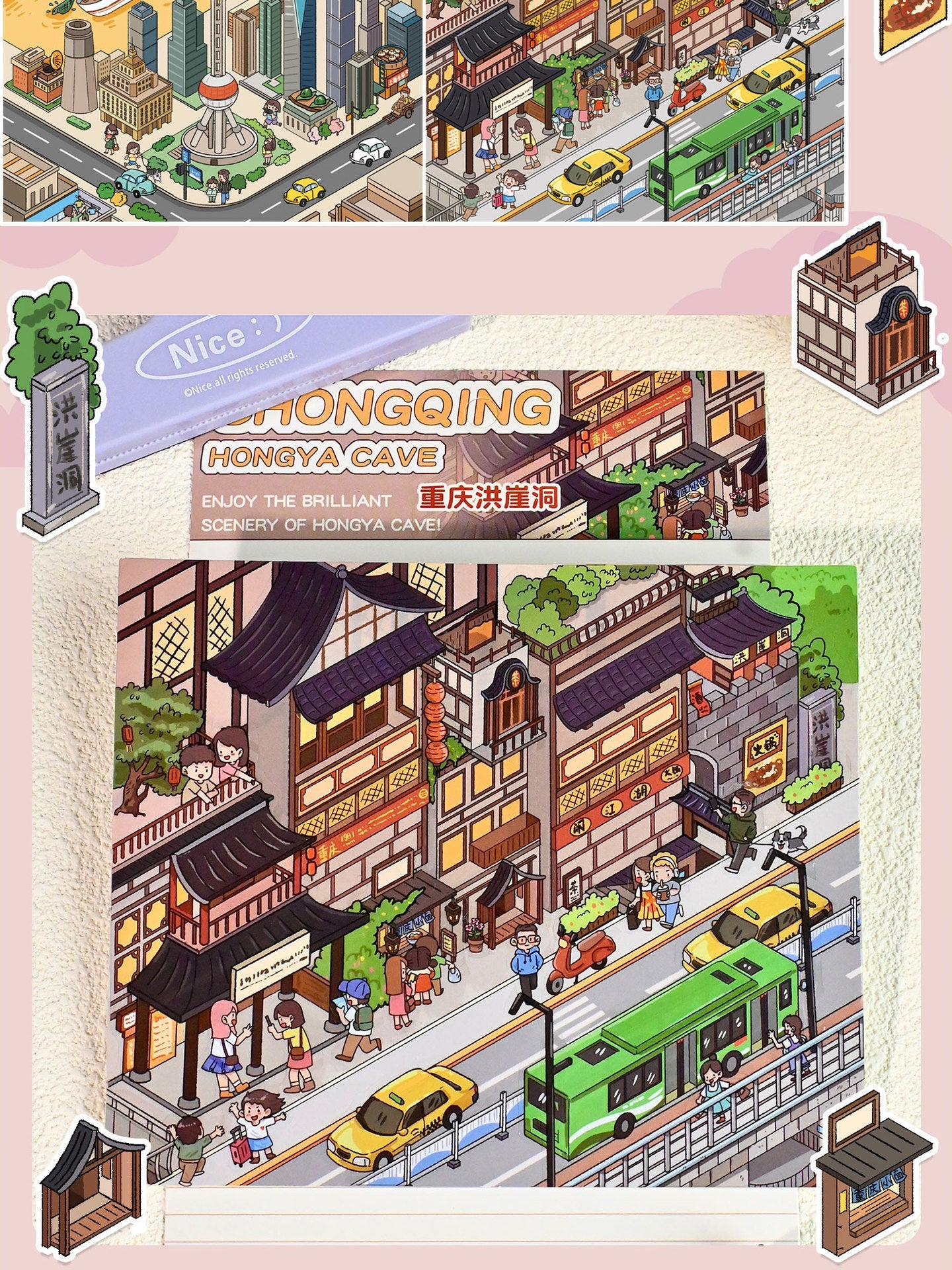 Link 21: 4 City Themes Landscape Stickers 3D Stereo Cottage Collection Stickers