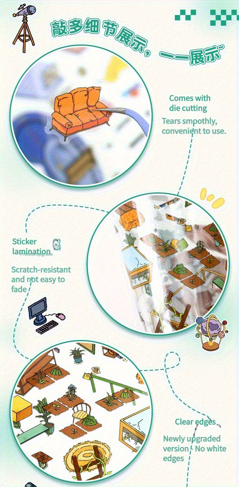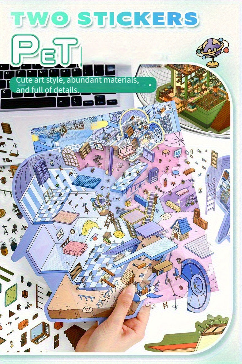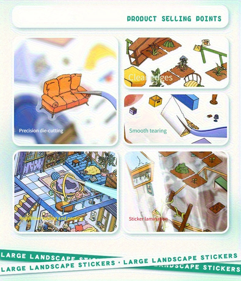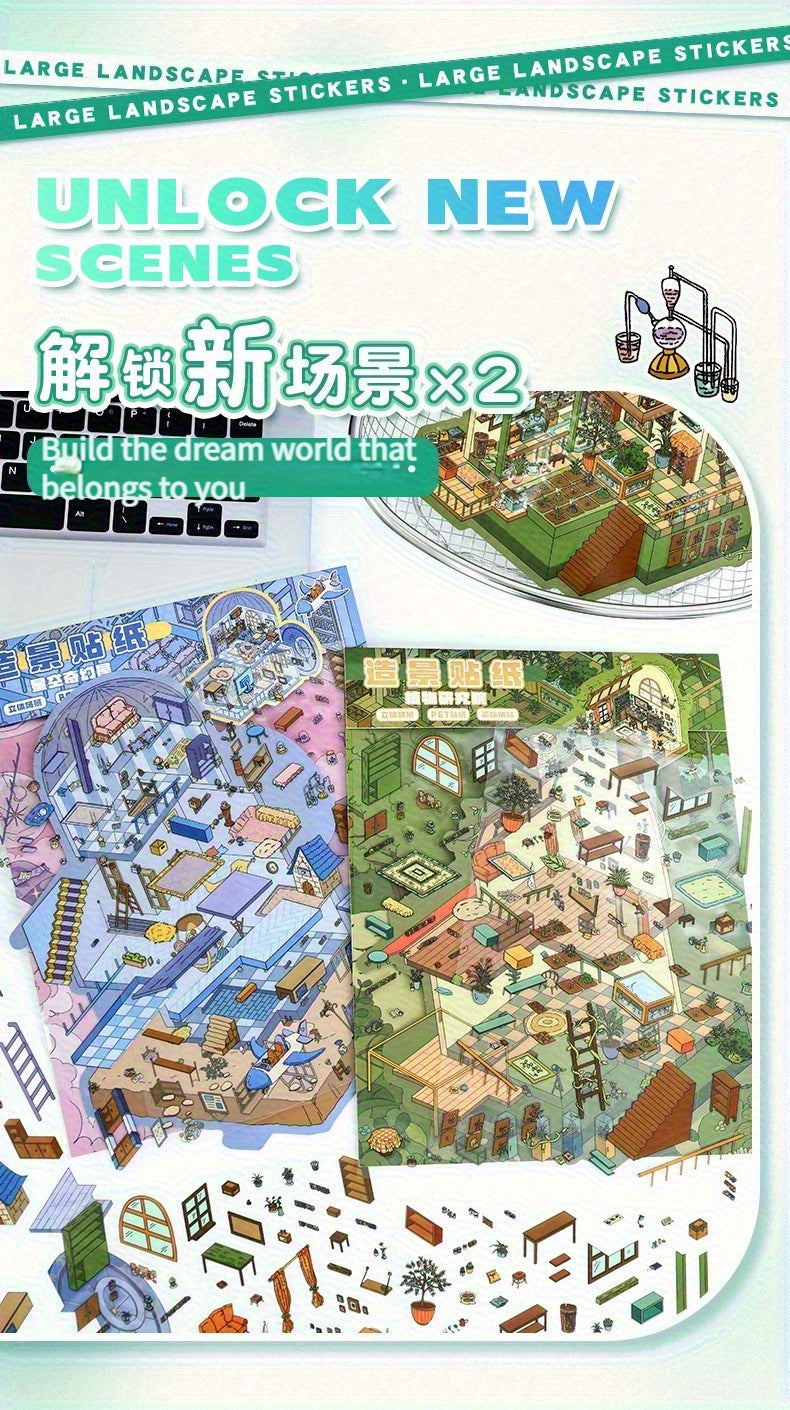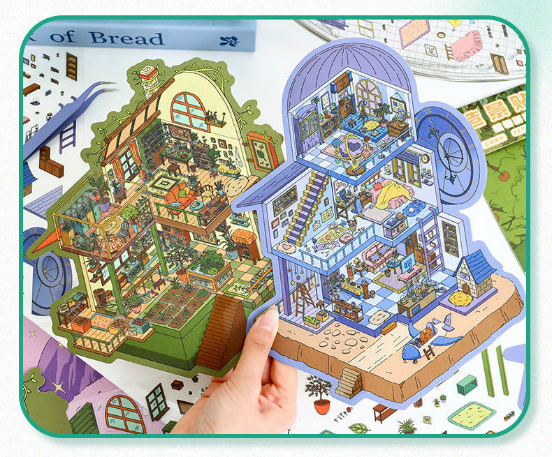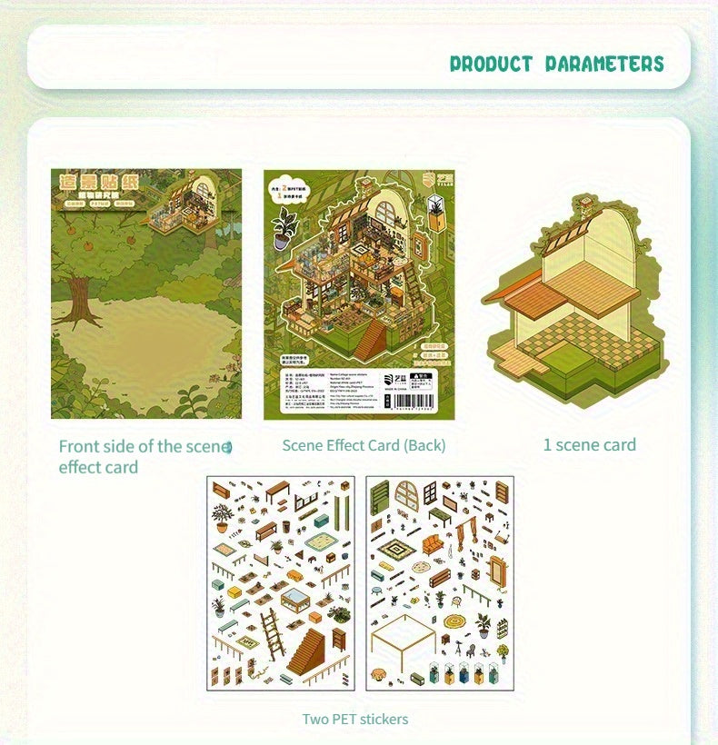 Link 8: 12 Different Themes Scenery Stickers 3D Stereoscopic Cottage Scene Collage Bulidling Journal Stickers Miniature Scene Stickers