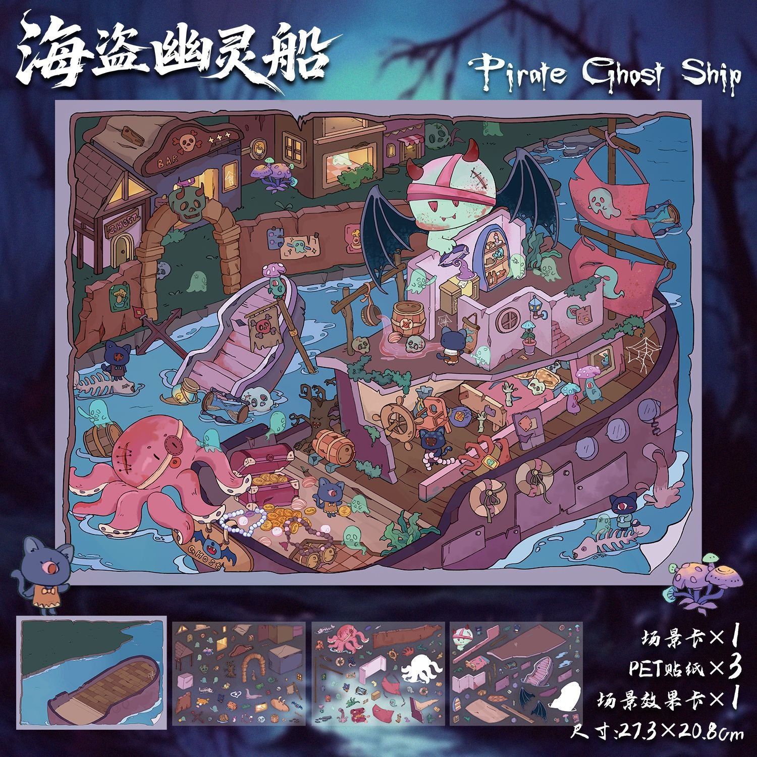 Link 39: 6 Spooky Adorable Themes Scene Stickers 3D Miniature Journal Stickers
