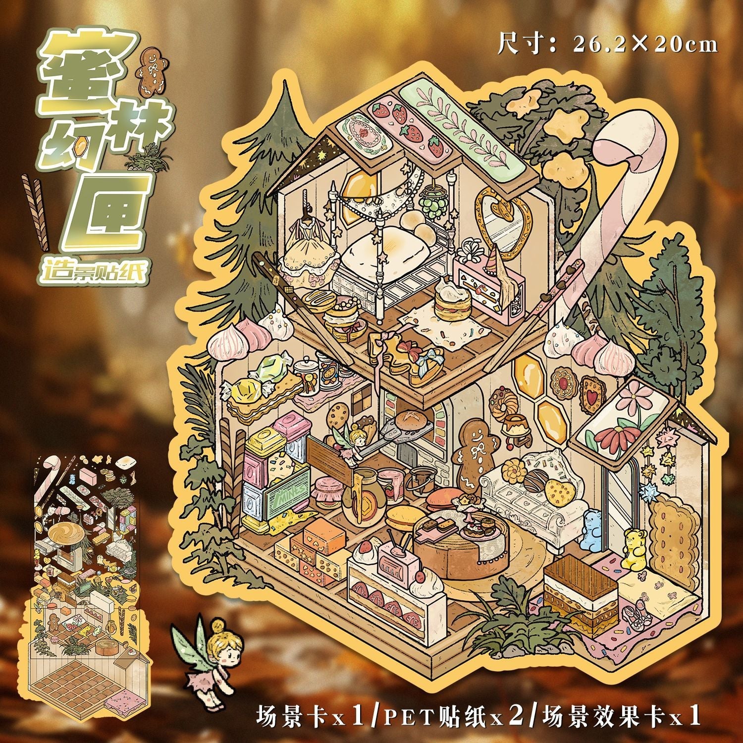 Link 16: 68.0 Large Scenery Stickers 3D Old Buildings DIY Stress Relief Journal Stickers