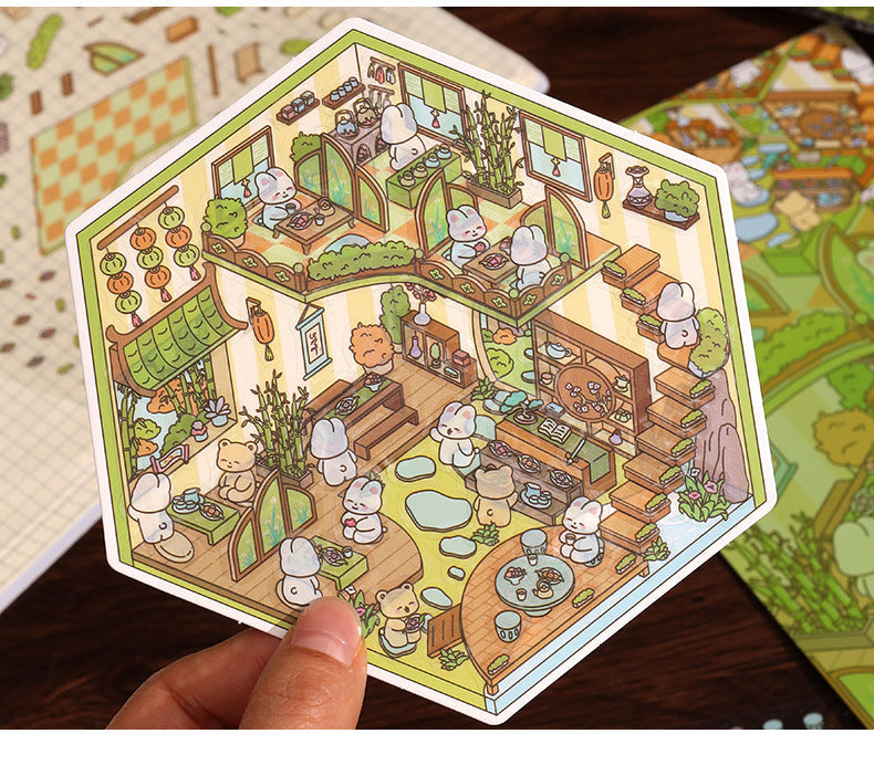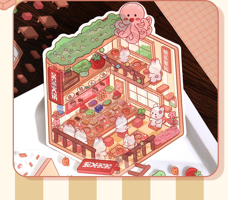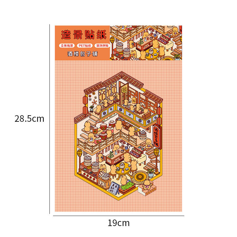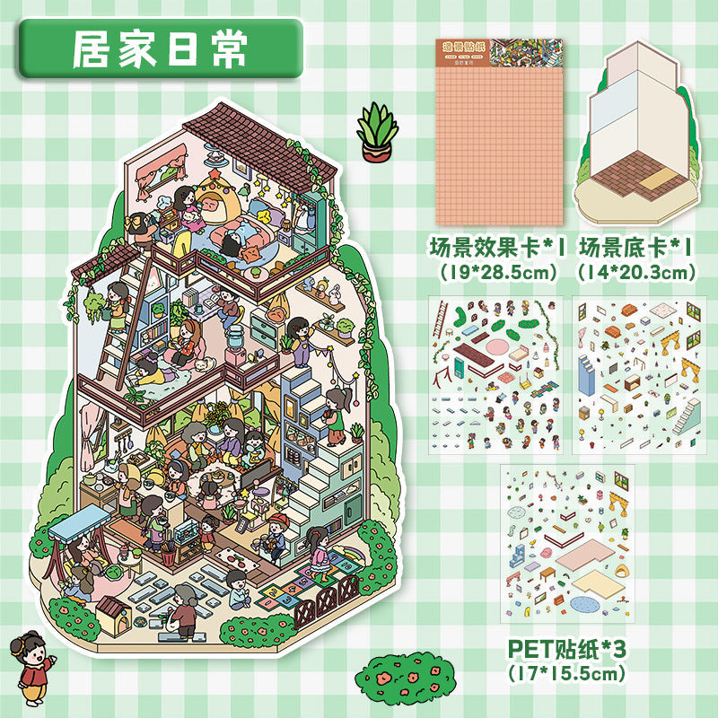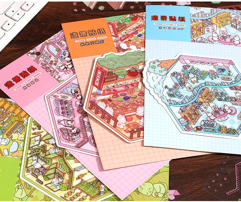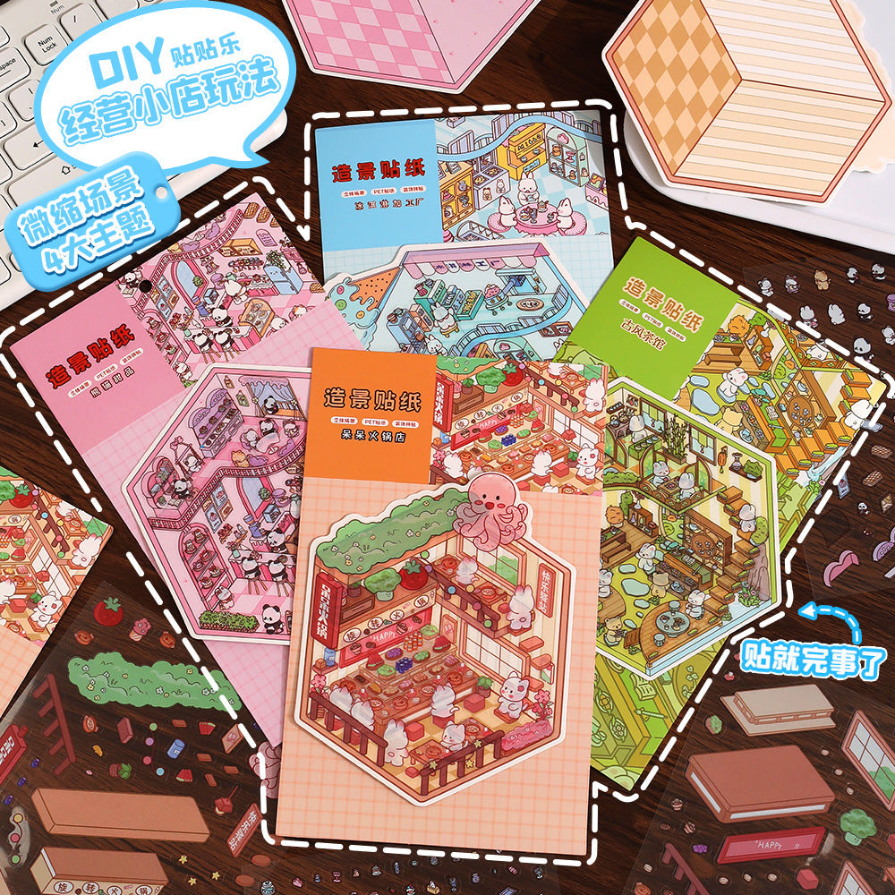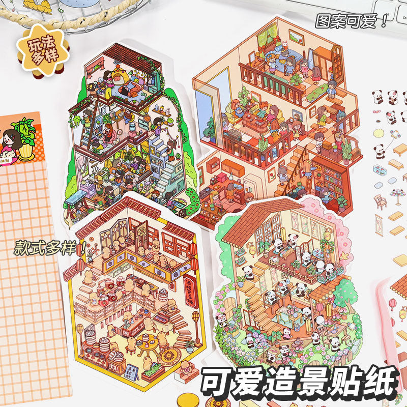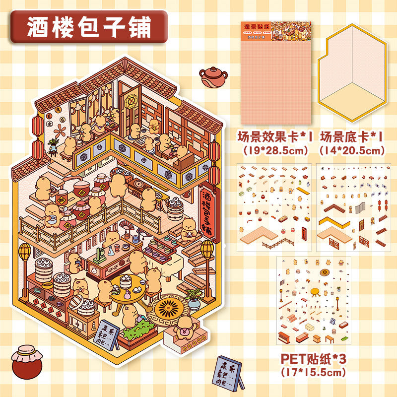 Link 26: 8 Themes Ancient Houses Miniature Scenery Stickers Original Cute Scenery Cottage Cartoon DIY Stickers