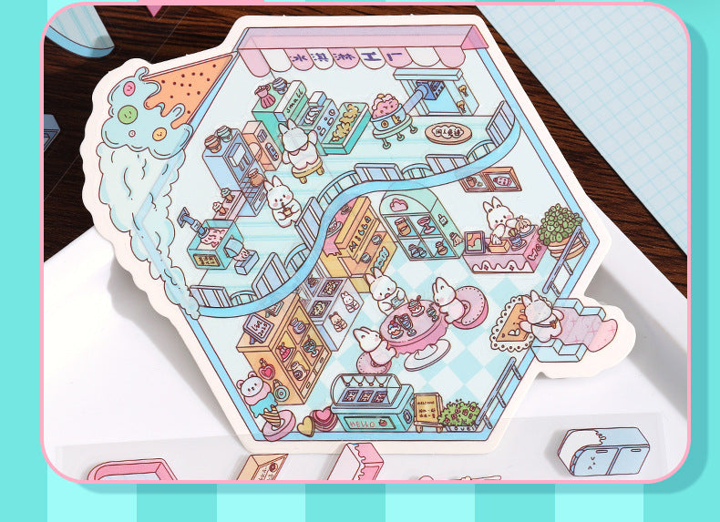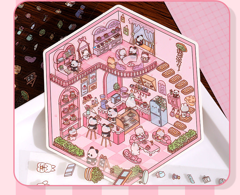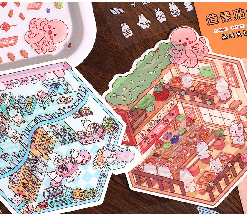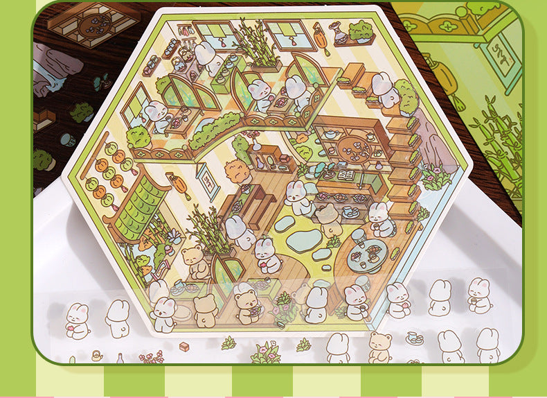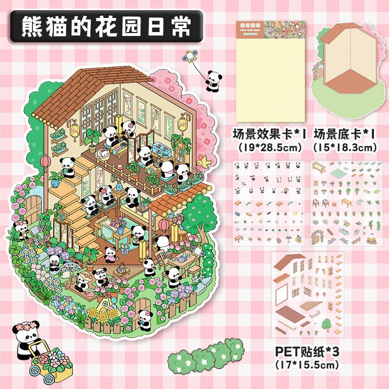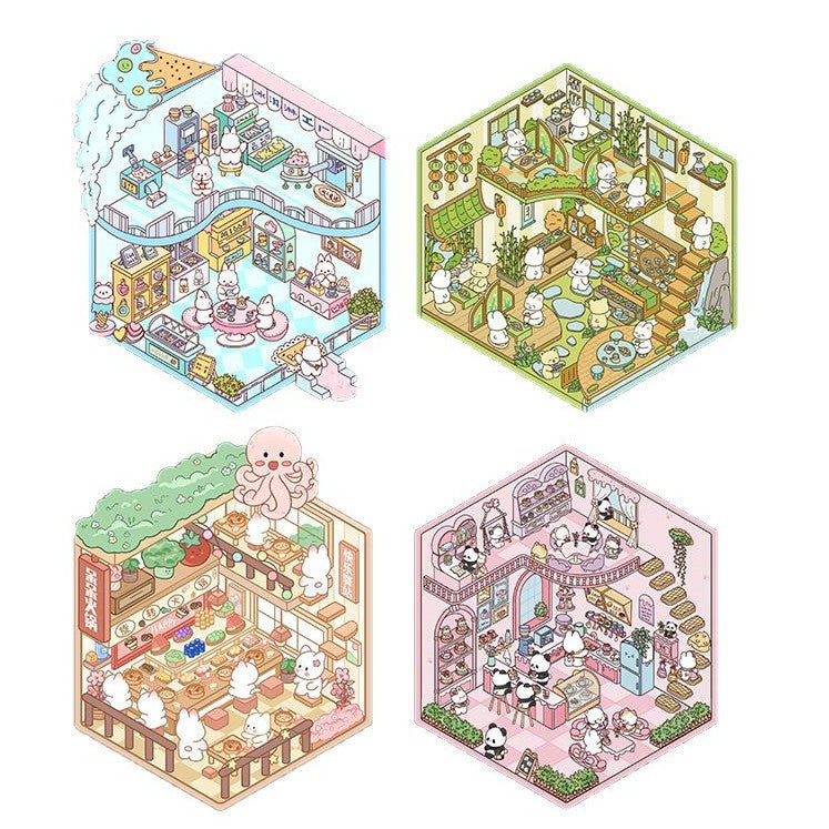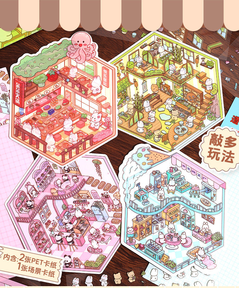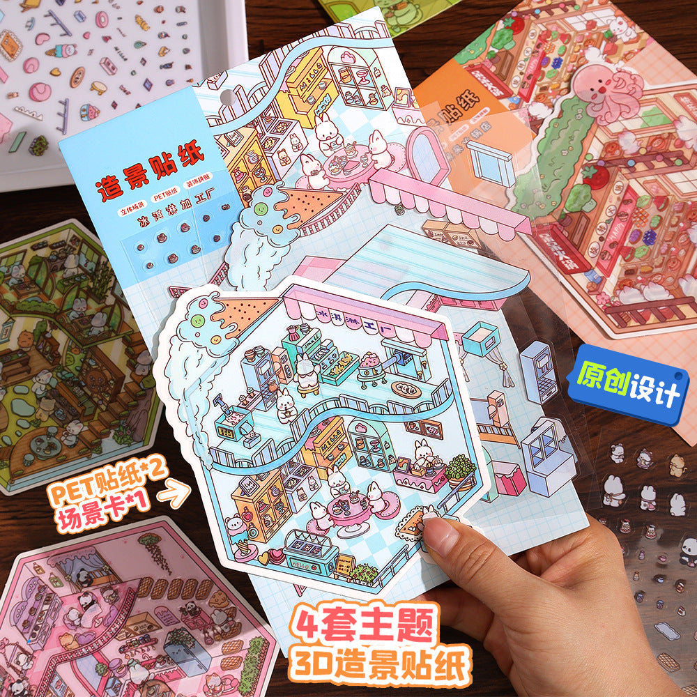 Link 26: 8 Themes Ancient Houses Miniature Scenery Stickers Original Cute Scenery Cottage Cartoon DIY Stickers