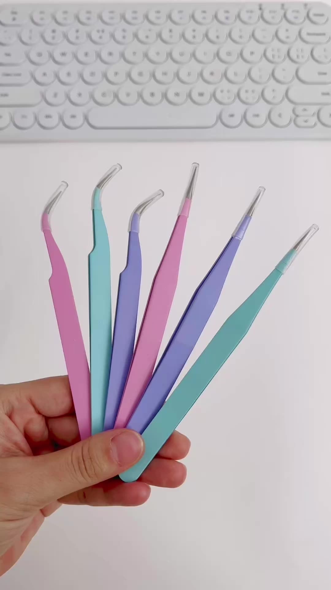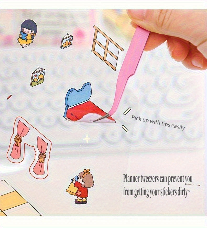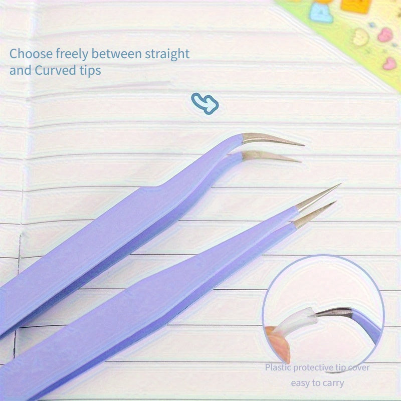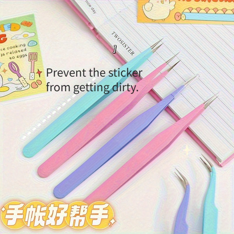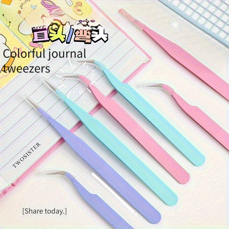 Link 7: Macaron Colorful Journal Tweezers Straight Curved Tips Stickers Handmade Journal Tools Stainless Steel Eyelash Tweezers