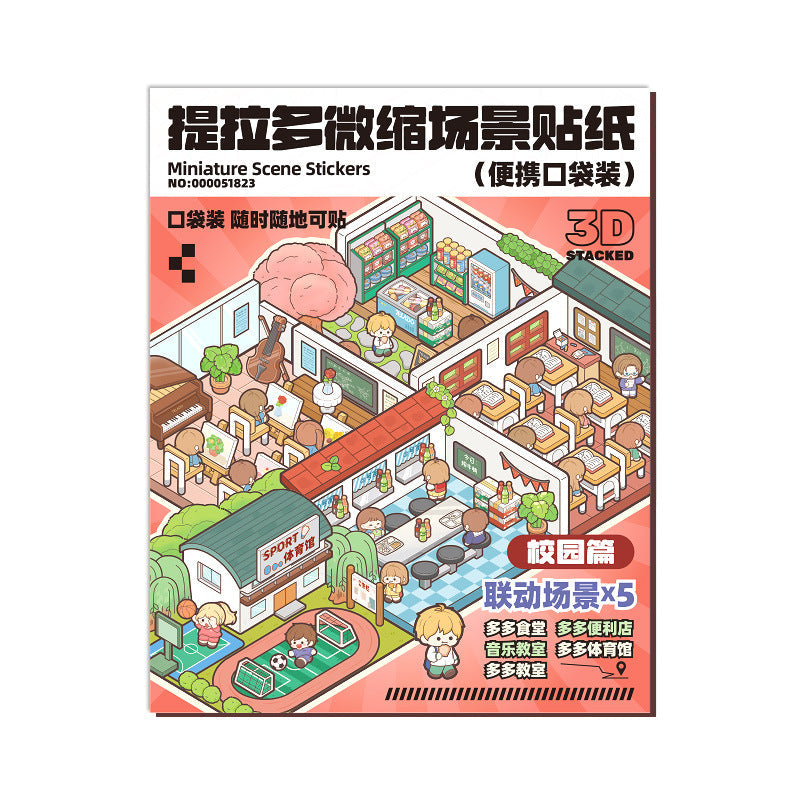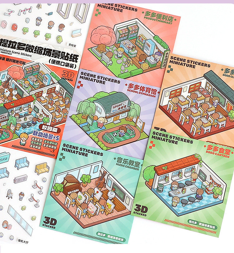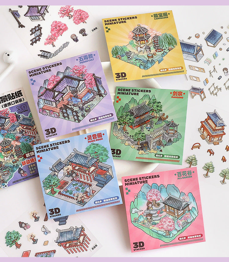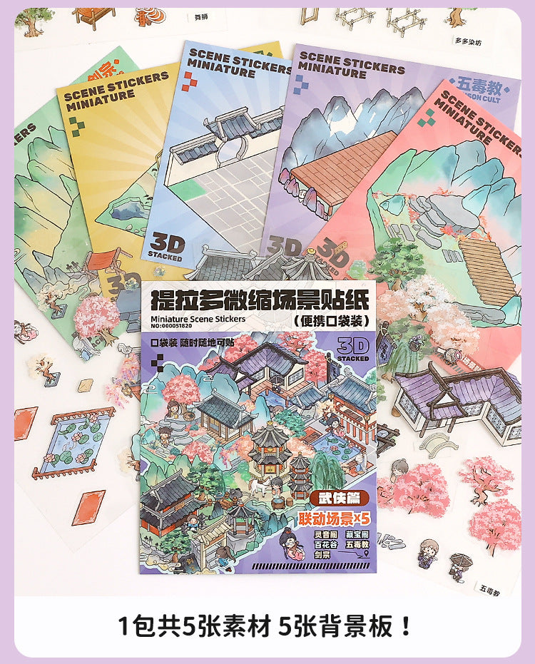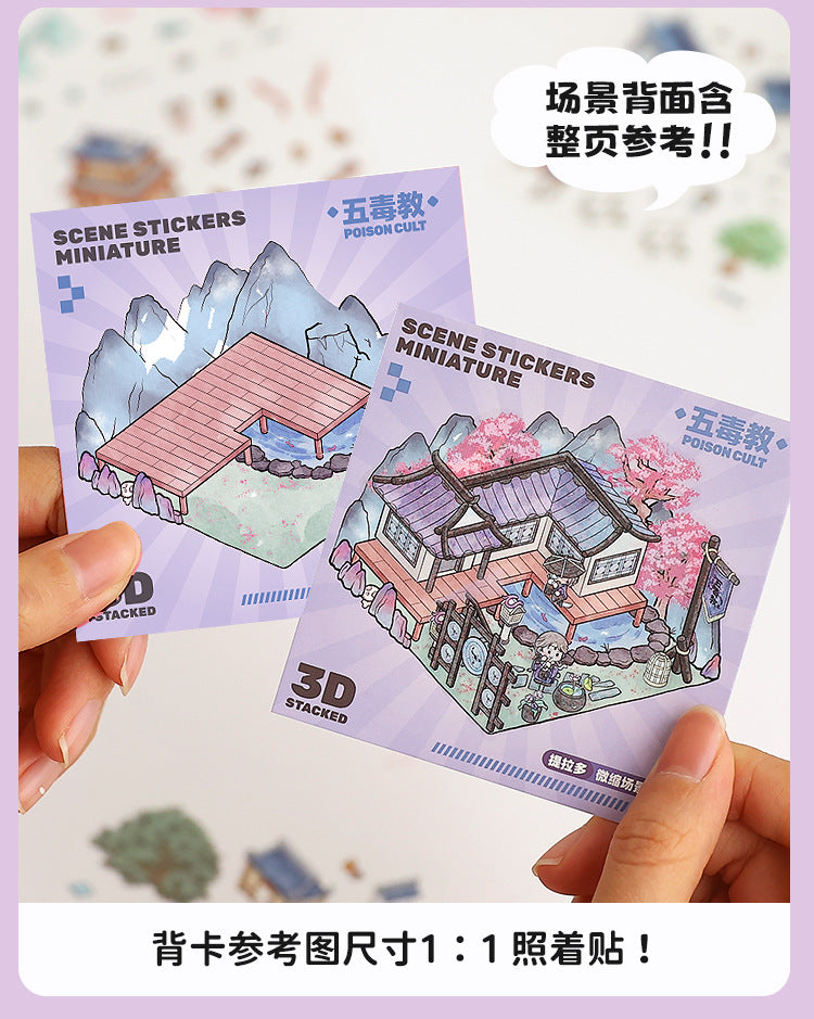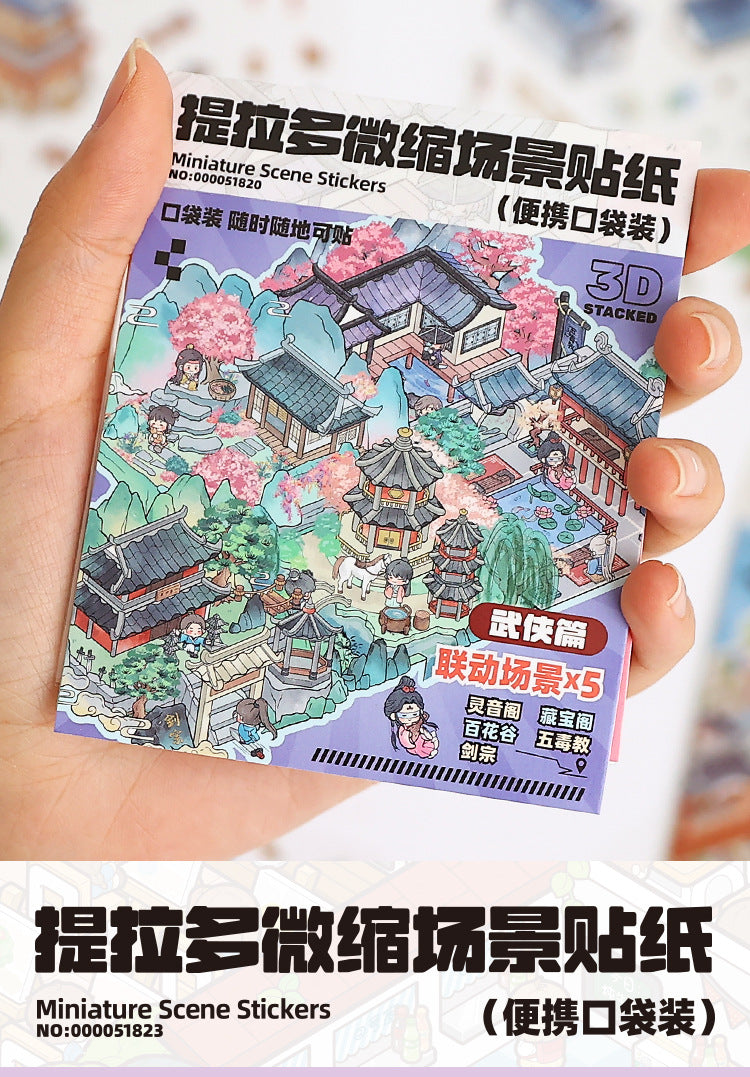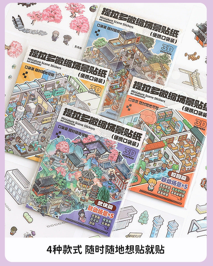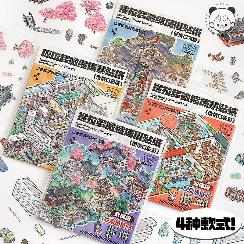 Link23: 4 Themes Mini 3D Scene Sticker Brochure Pack Journal Stickers Scenery Stickers