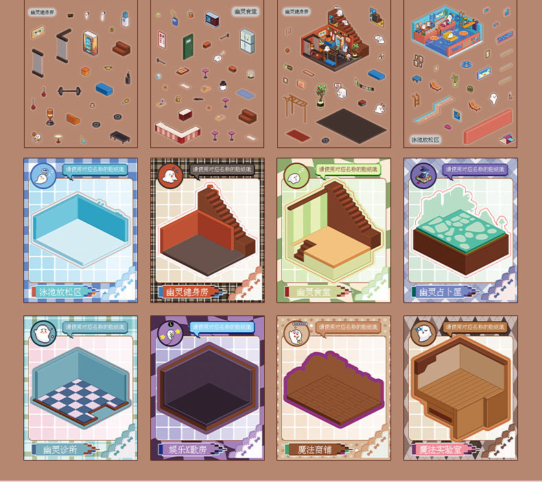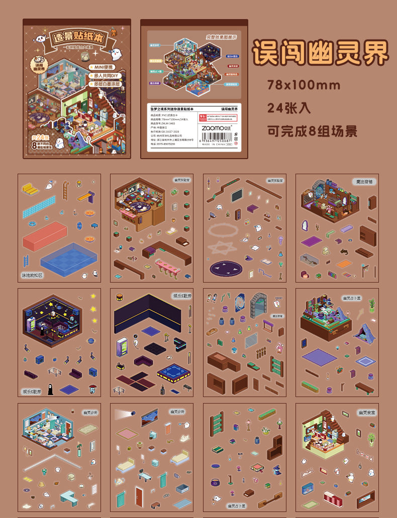 Link 46: Spooky Cute Mini 3D Scene Stickers 8 Themes 16 Sheets of Stickers In A Book
